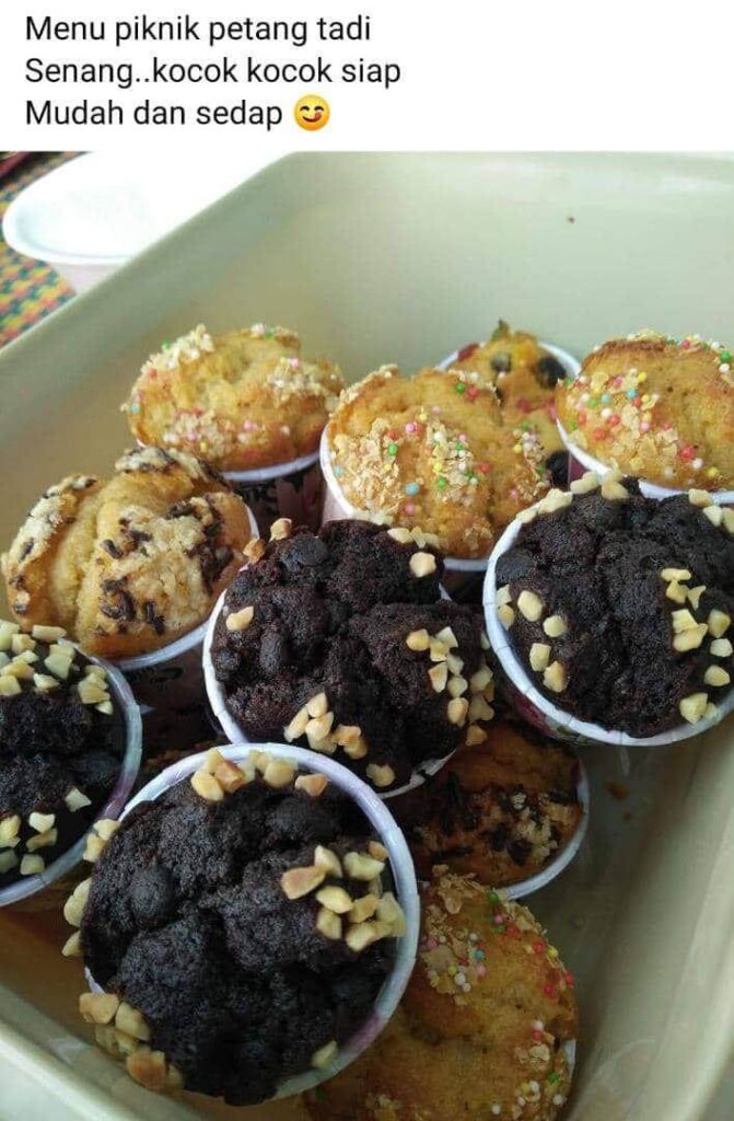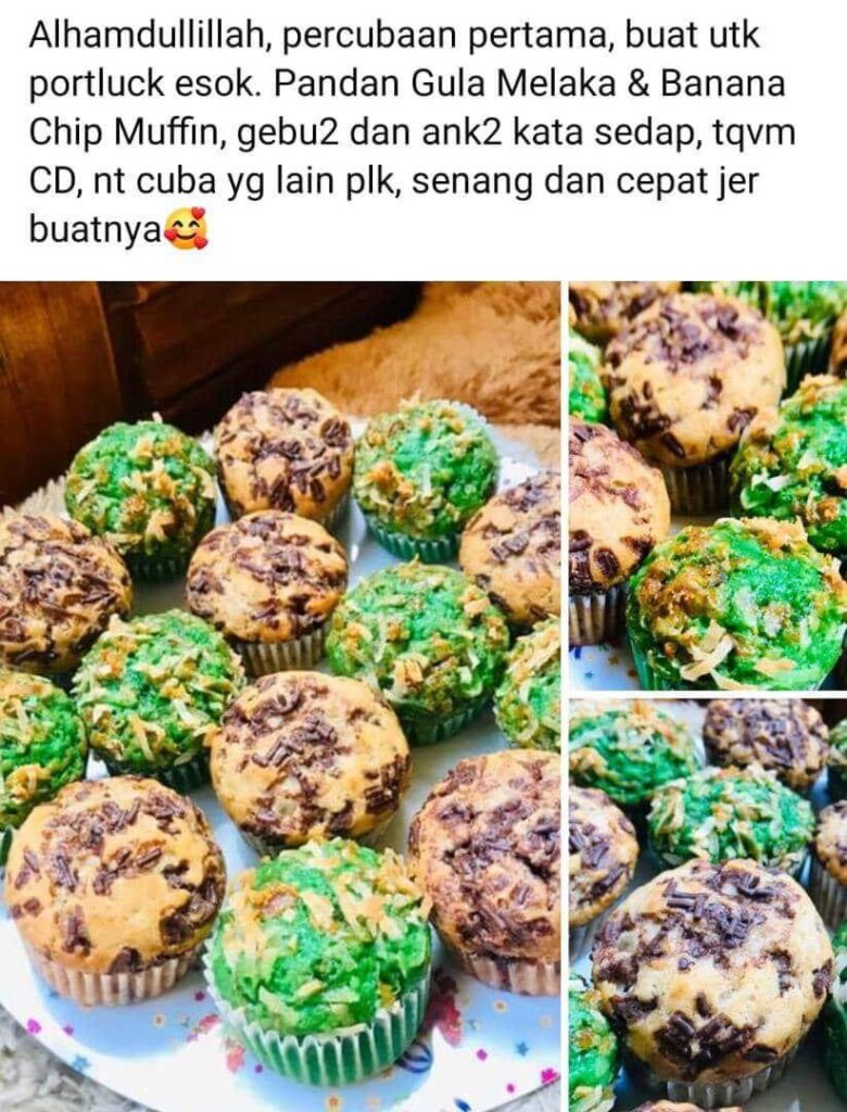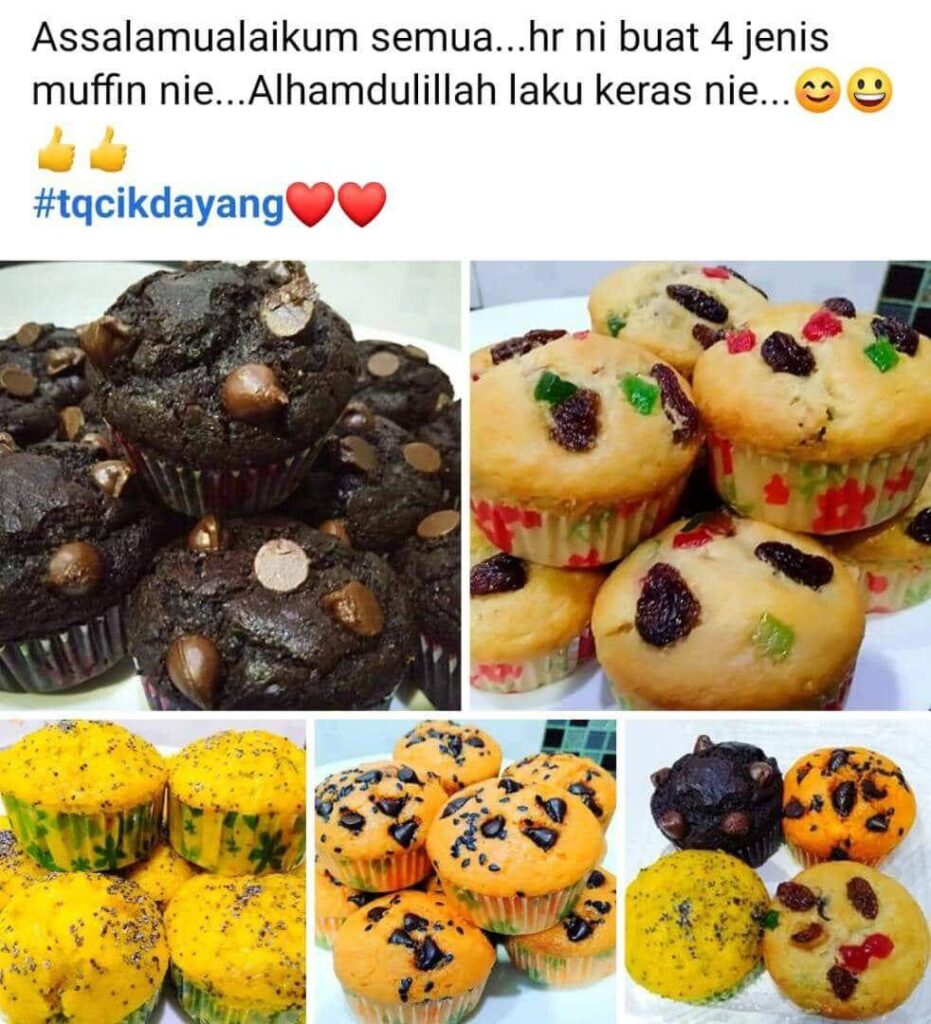 “InsyaAllah, dengan teknik dan bahan-bahan yang mudah, hampa boleh buat sendiri je muffin ni dekat rumah. Memang mudah & sedap. Cik Dayang dulu berniaga jual muffin ni la. La ni Cik Dayang kongsi dengan hampa teknik yang betul untuk buat muffin”